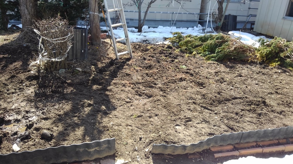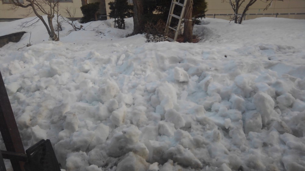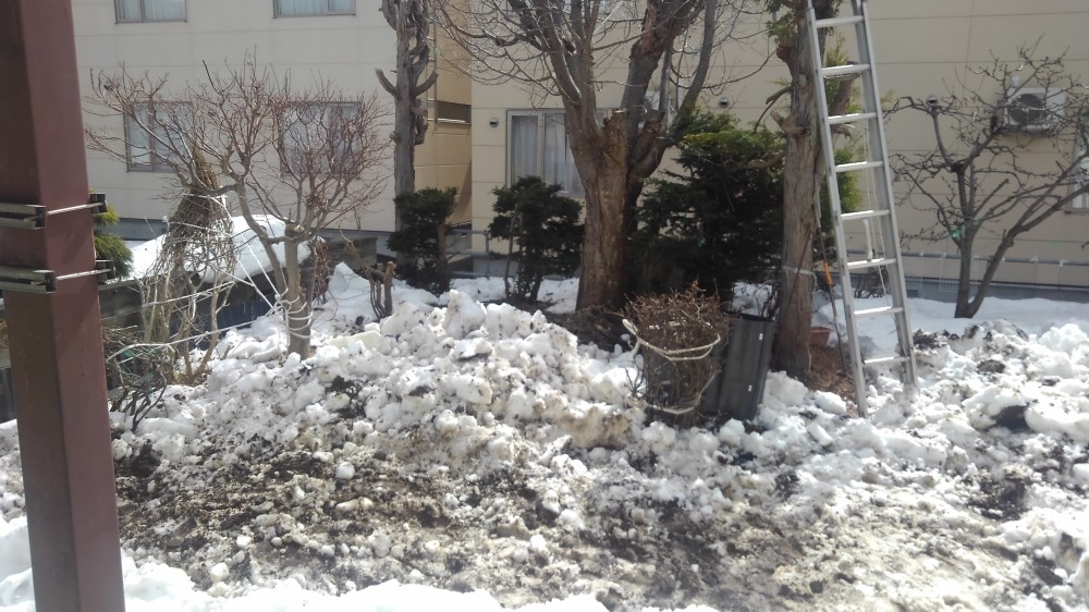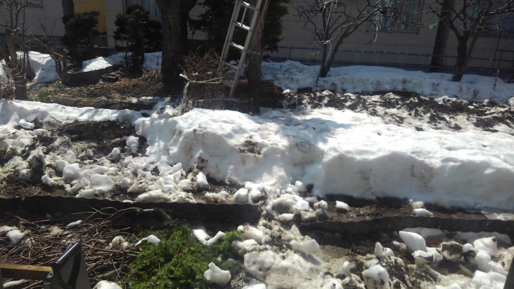 今年は3月半ばに一度、雪割りをしたのですがその翌日に大雪が降り無に帰ってしまったので、やる気がそがれてしまいました。