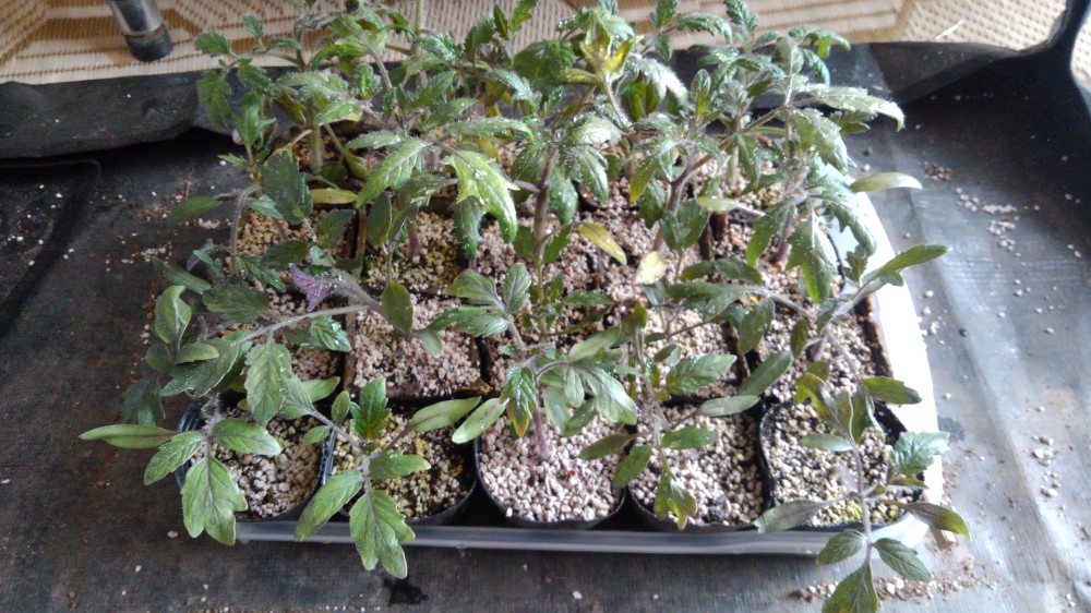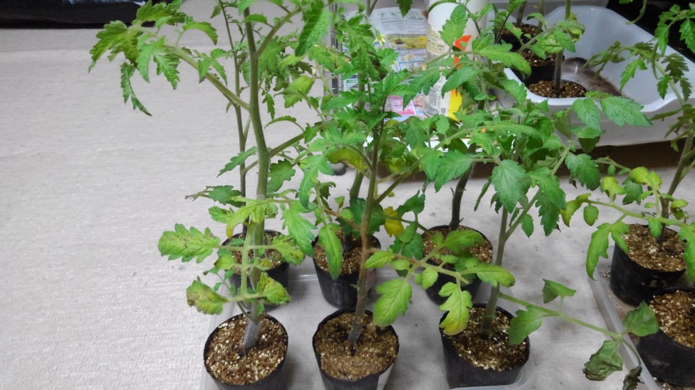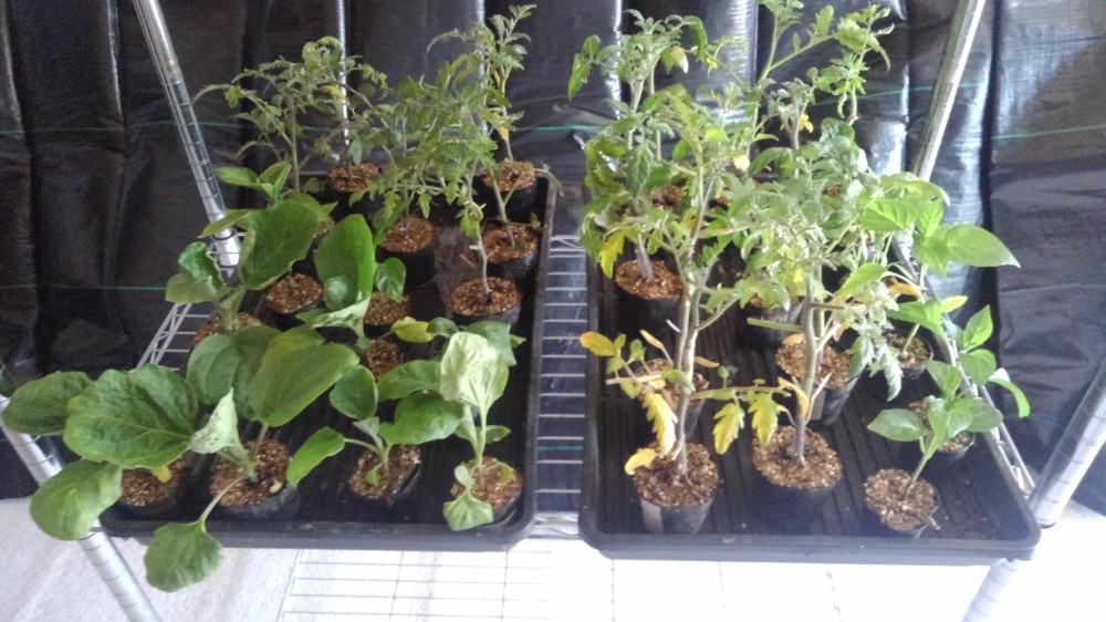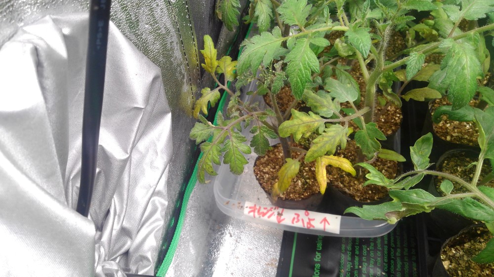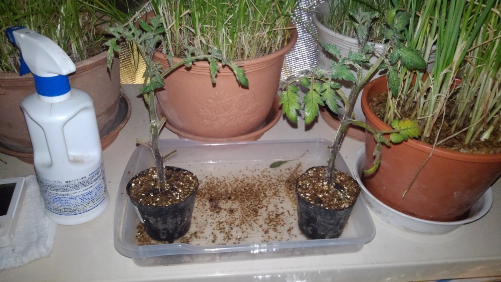 トマトの苗の葉が下の方から枯れてきているので心配は継続中です。上の方がまだ何とか生きているので定植の際は寝かせ植をして対応しようと思っています。