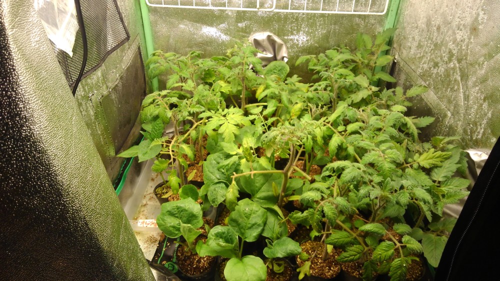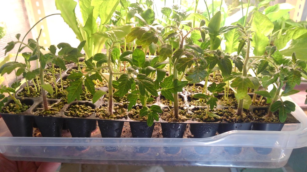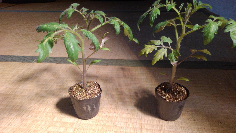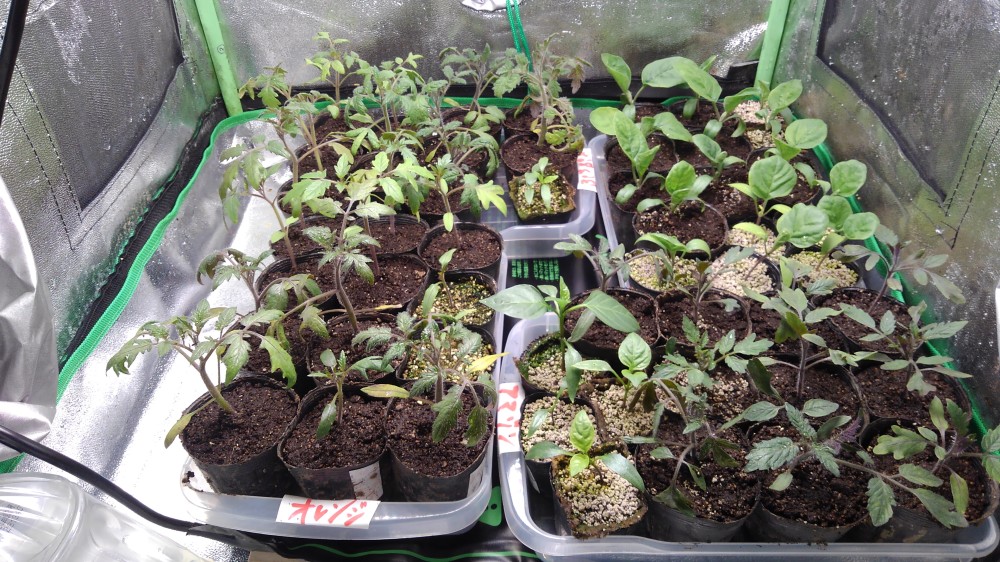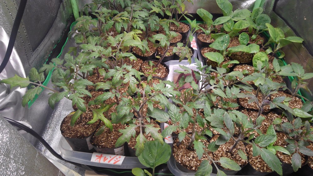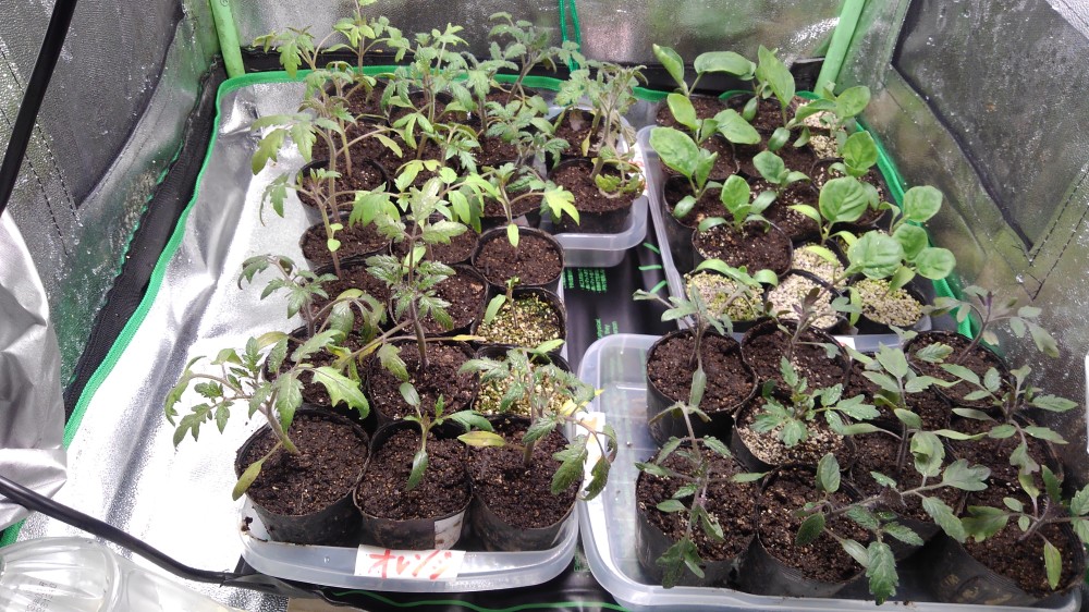 今年はLEDライトが効いたため、ミニトマト苗がかなり大きく育ってしまいました。