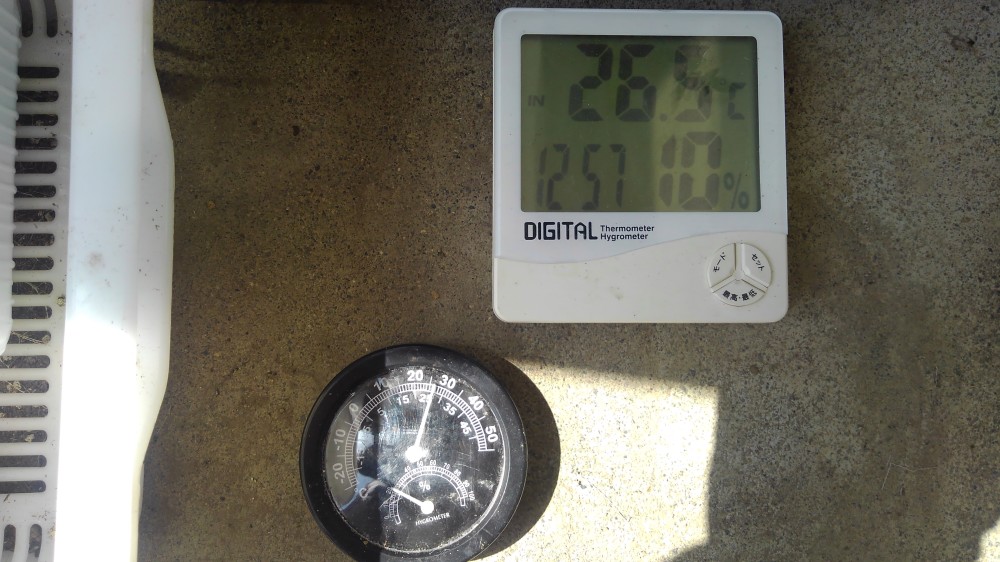デジタルだと電池の交換など面倒くさい。太陽電池の温度計もありますが、そもそも温度計は日陰に置くもので大丈夫なのかちょっと心配なところもあるのです。