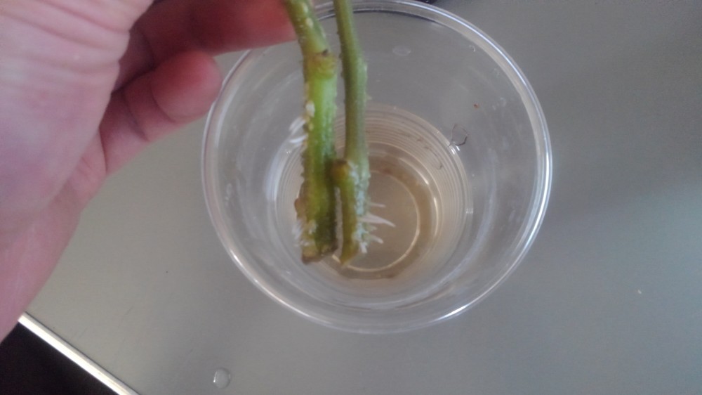 で、摘心した部分はメネデール液につけて根を出そうという目論見です。