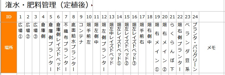 ・(畑右端)倉庫側エリア(ID 1-6,22)