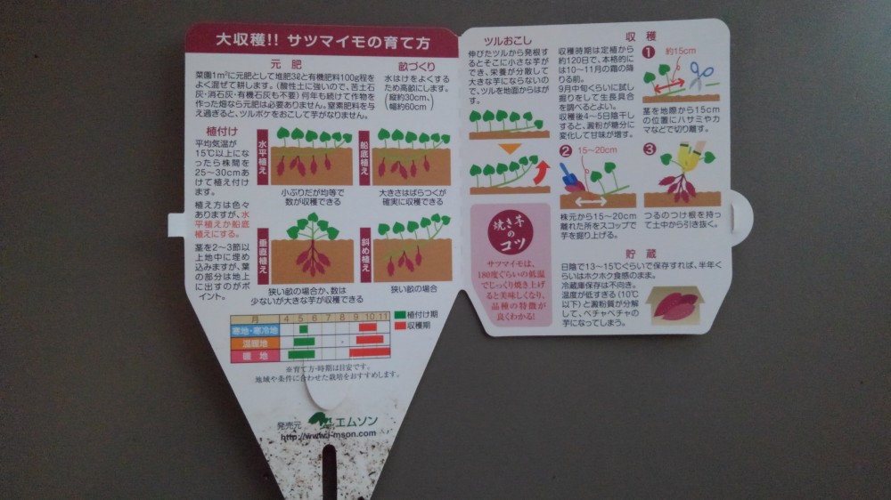 家庭菜園で育てる野菜にサツマイモを推す人も多いようでウチでもチャレンジです。