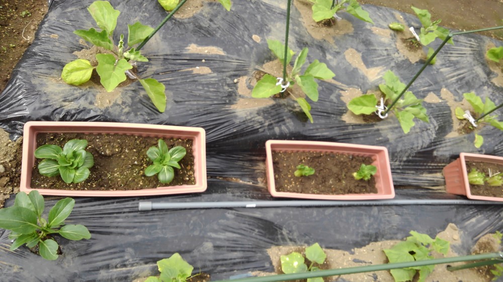 定植後は成長具合が芳しくないものもありますが、そこらへんは今、追加で種をまいているところです。