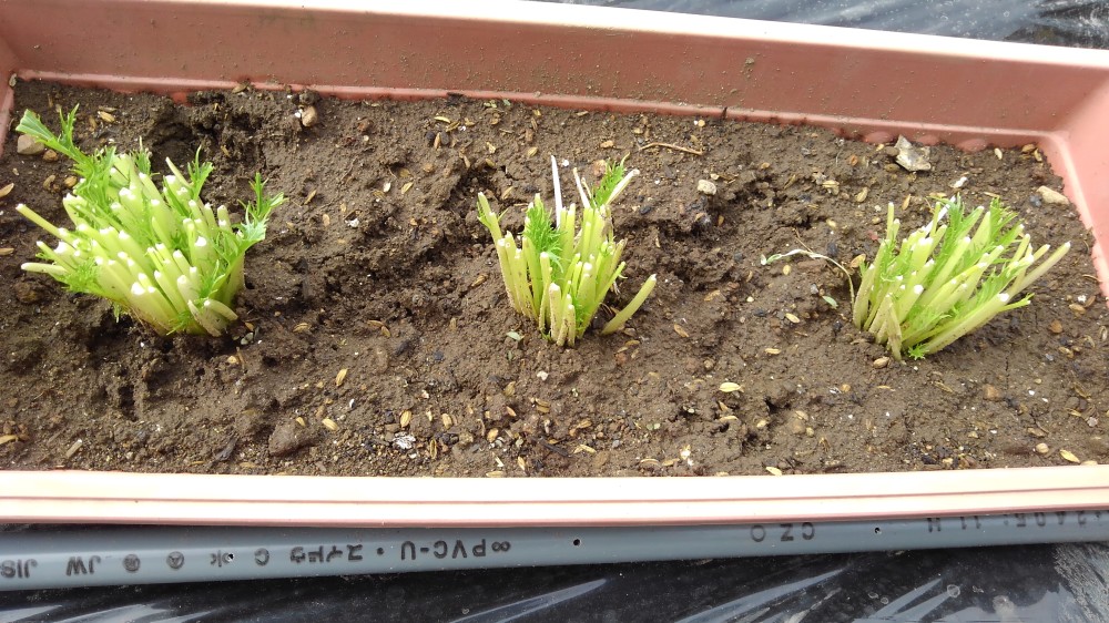 日光の当たりにくい場所のためか茎が細いですが、美味しくいただきました。
