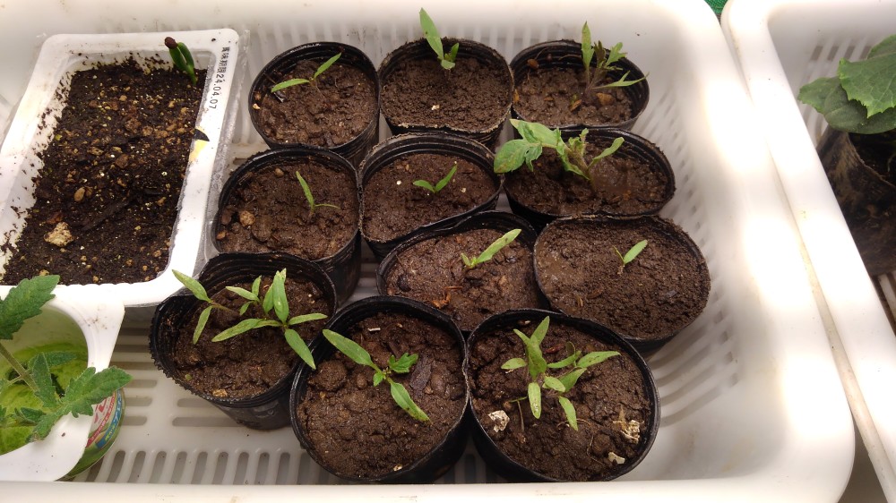 あとは豆系の苗がよろしくないので、豆系の種を改めて蒔いて様子を見ています。