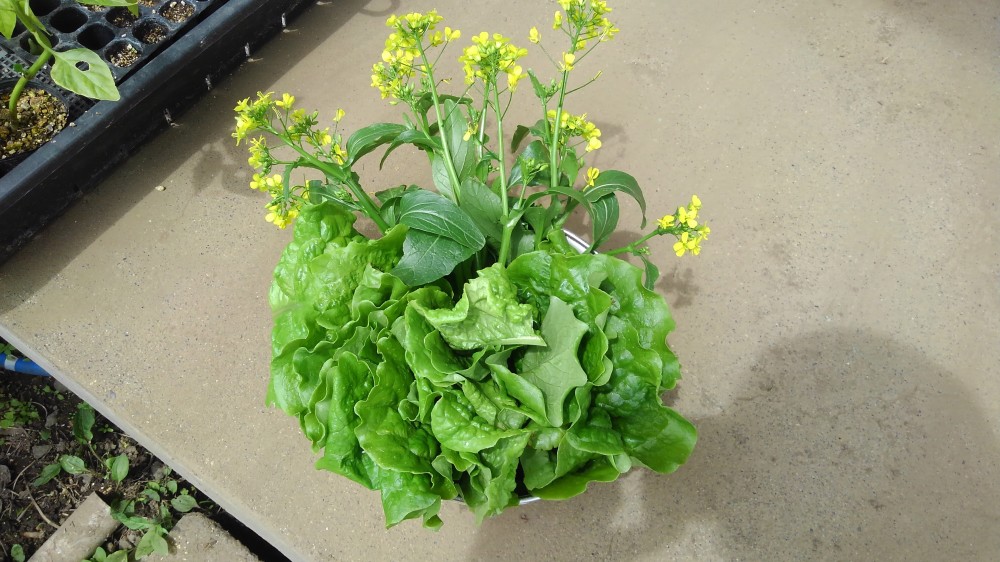 レタスとアスパラ菜の収穫