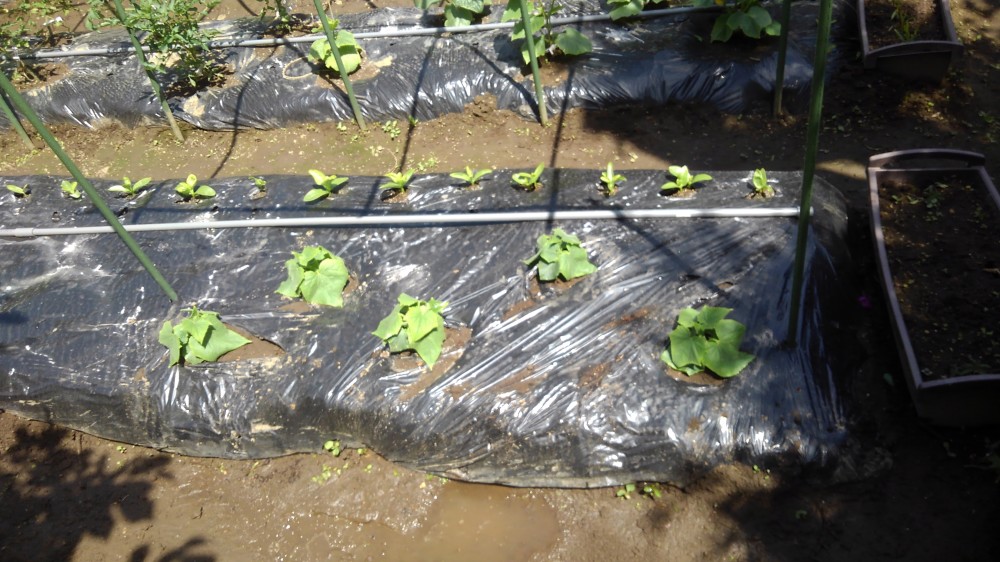 その後2週間ほど寝かせ、マルチを張り、支柱をしたてたりと結構忙しい。
