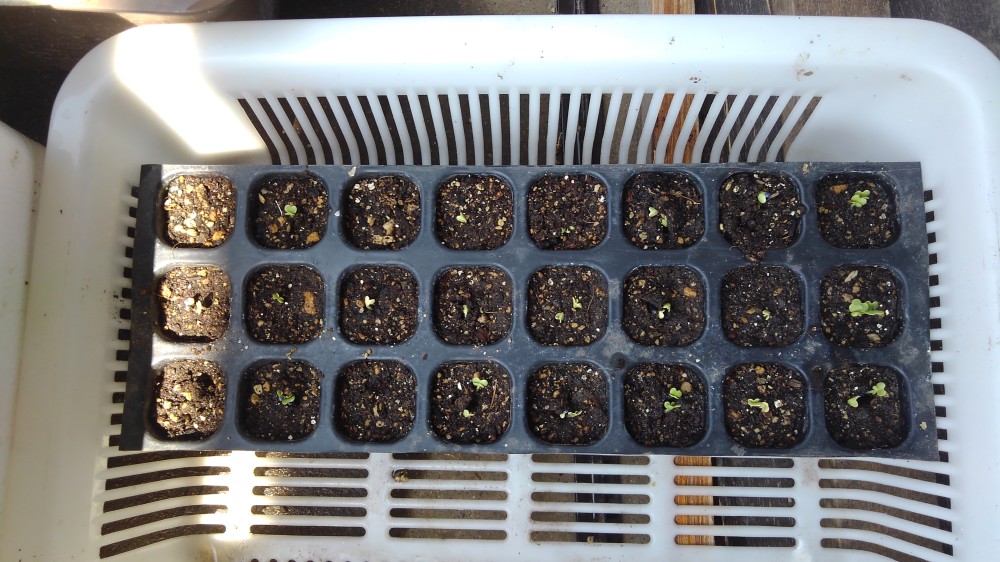 一方、アスパラ菜について実験的にタッパーウェアに土を入れて種をばらまいてみたところ、意外にもいい感じで育ってくれました。