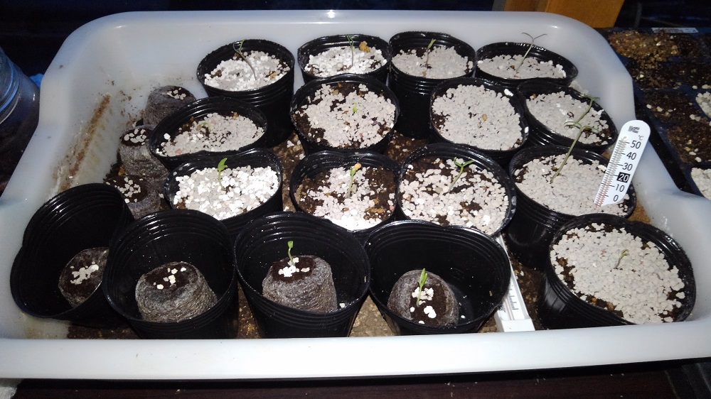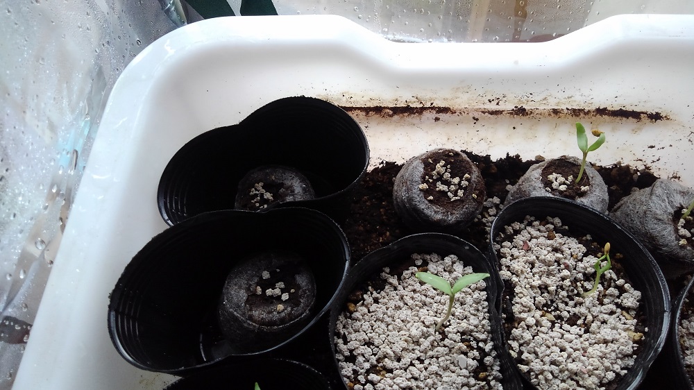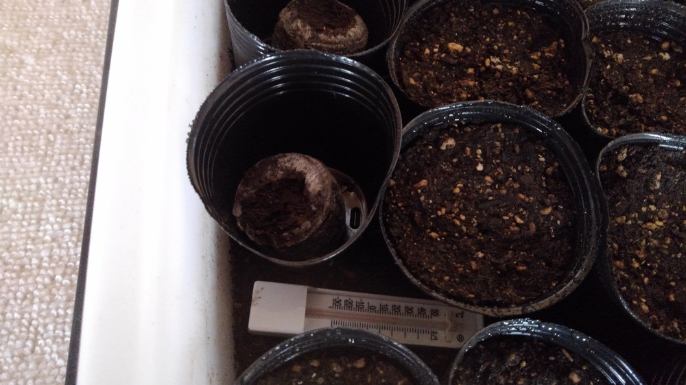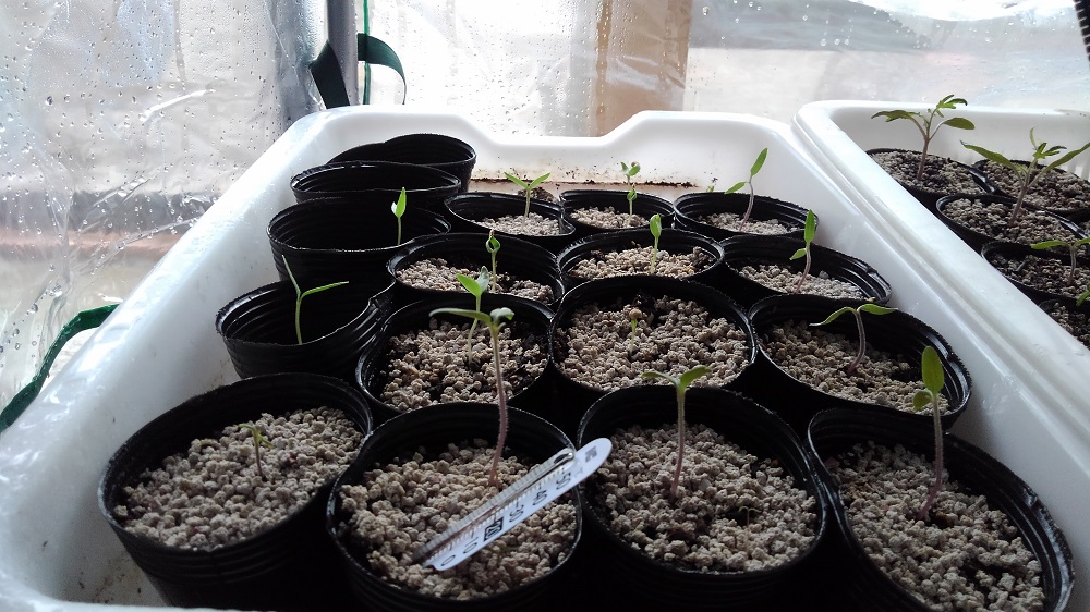 で、ポットの種はすべて双葉が顔を出しましたが、ジフィーセブンの種はまだものもあり、現時点ではポットで種を植えたほうが良いという結論に至りました。