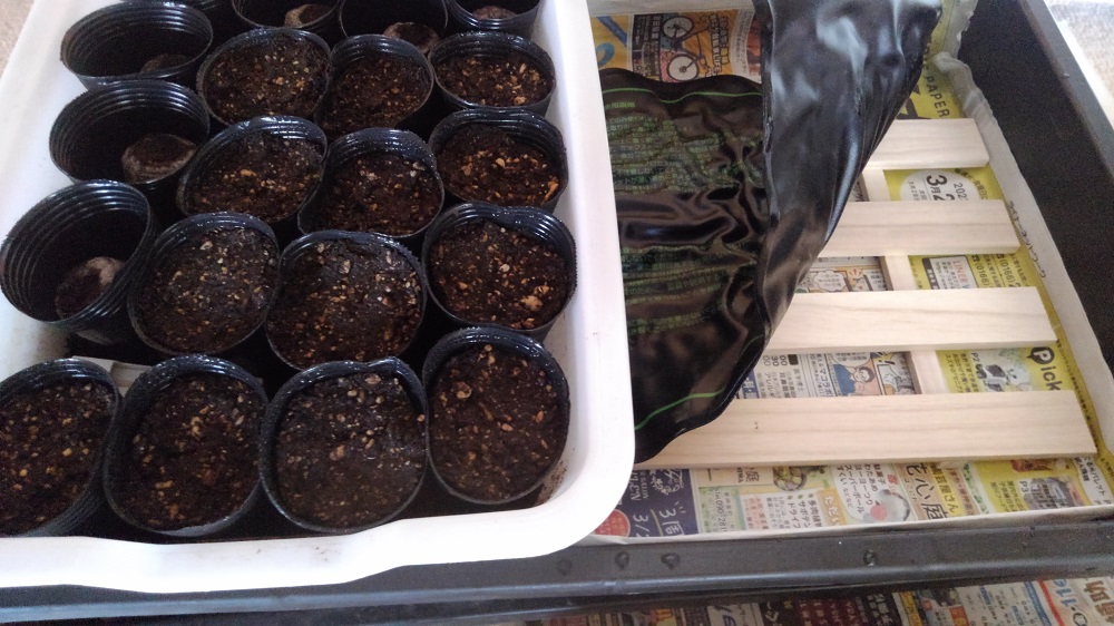 カバーをかけて発芽を待ちます。