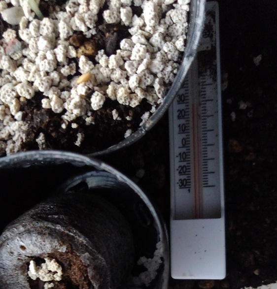 ポット内の地温が23度くらい。下地の土の温度が28~29度くらい。となっています。