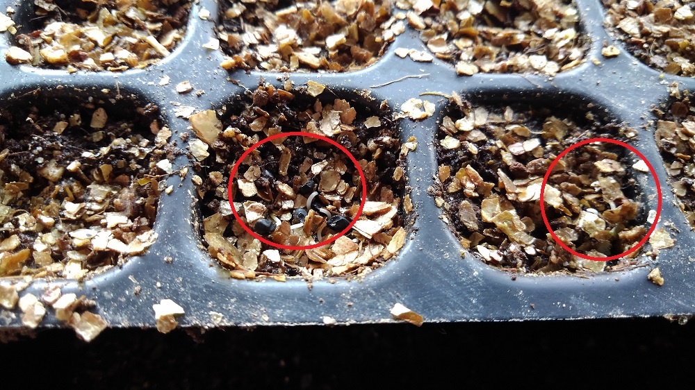 玉ねぎと同様に種の数がセルトレイの穴より多いので1つの穴に複数の種をまきました。
