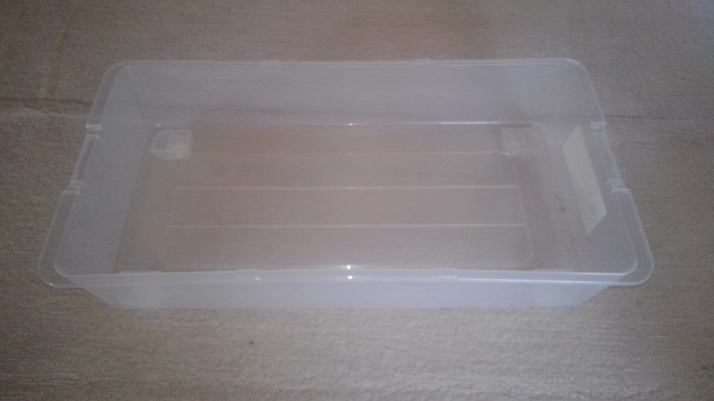 分かるでしょうか。衣装ケースの底に穴が開いています。半田ごてで穴をあけました。