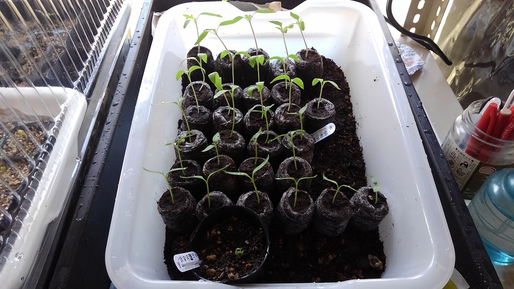 先日、催芽蒔きにてポットとジフィーセブンに発芽した種を植えて経過を見たところ、ジフィーセブンでの成績がイマイチだったということで多少その評価が落ちているジフィーセブンです。