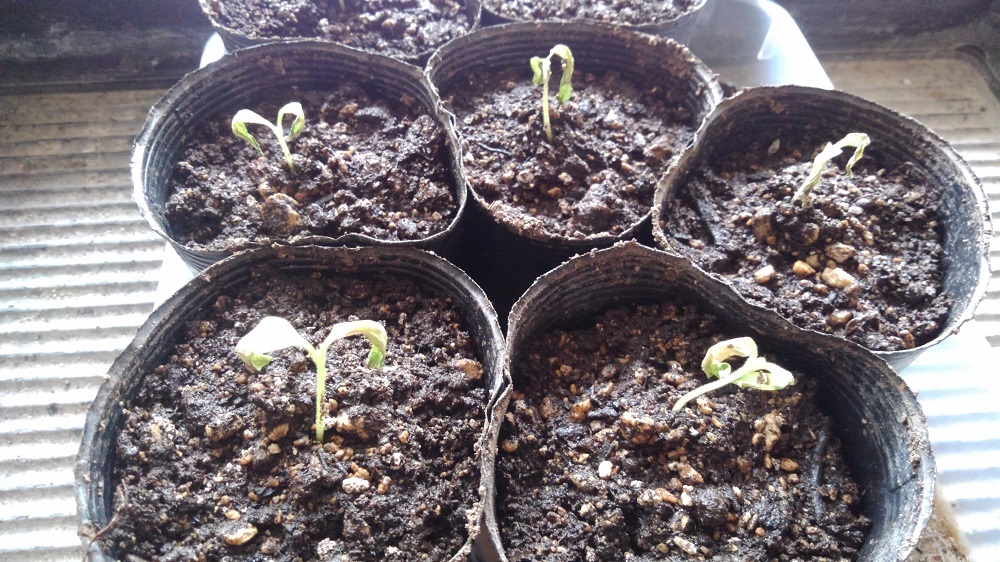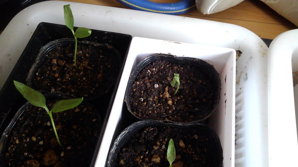 新たに購入した温床マットがよく出来ているのか、いい感じで発芽してきています。