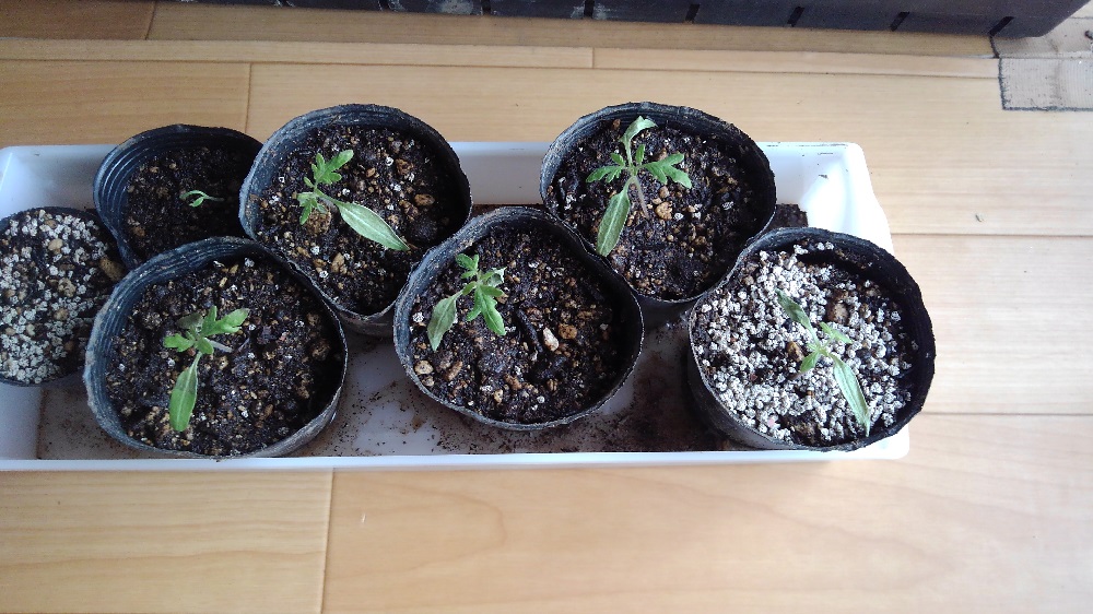 他の苗はどうなったかというと、取り合えず9センチポットに鉢上げしました。